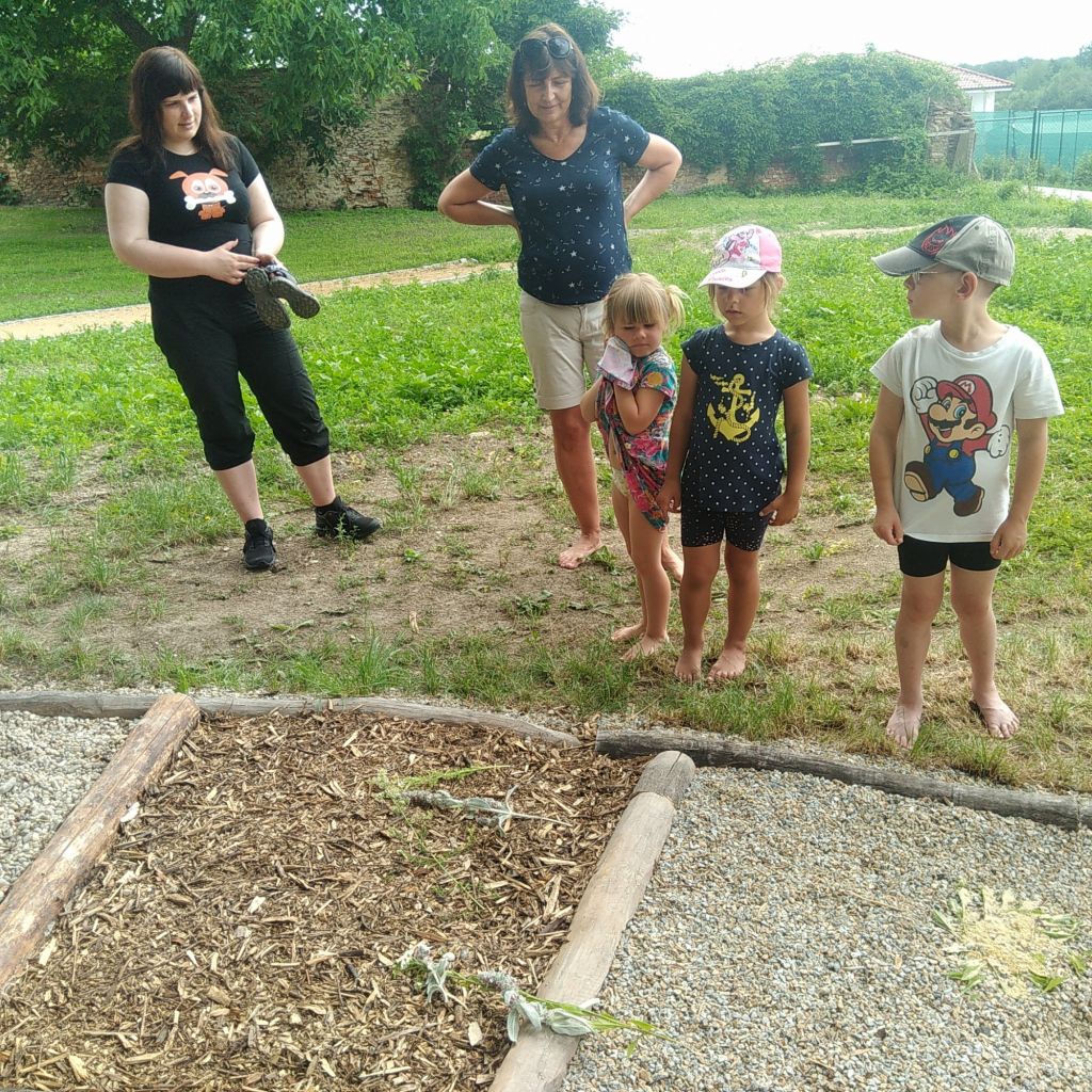 Ve čtvrtek 20. června, den před letním slunovratem, chelčické děti ze školky strávily dopolední program v přírodní zahradě Chelčického domova sv. Linharta a naučily se vzácnou věc: "opatrovat vodu naší Země jako oko v hlavě", a to je paráda! Vodou se děti omývaly, vodu pily, s vodou zalévaly, vodu v jezírku ozdobily pestrobarevnými květy, vodu přelévaly do různých nádob, aby ani kapka nebyla nazmar... Také jsme si ukázali v zahradě i dvoře Domova retenční nádrže na dešťovou vodu, které jsou zabudované v zemi a proudí do nich ze střech a kanalizací dešťová voda.