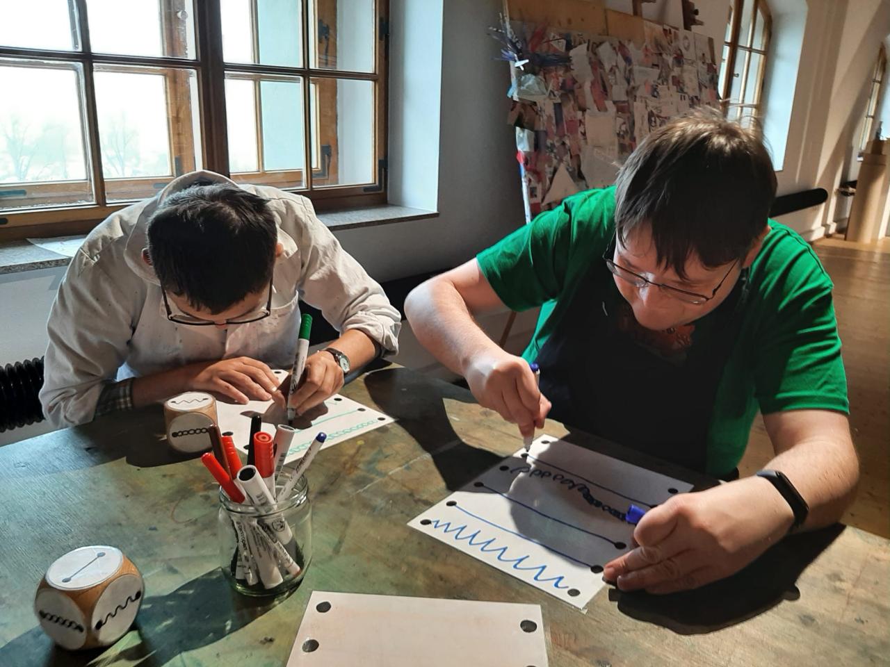 podložky, smazatelné tabulky, kam uživatelé kreslili podle motivu, který
