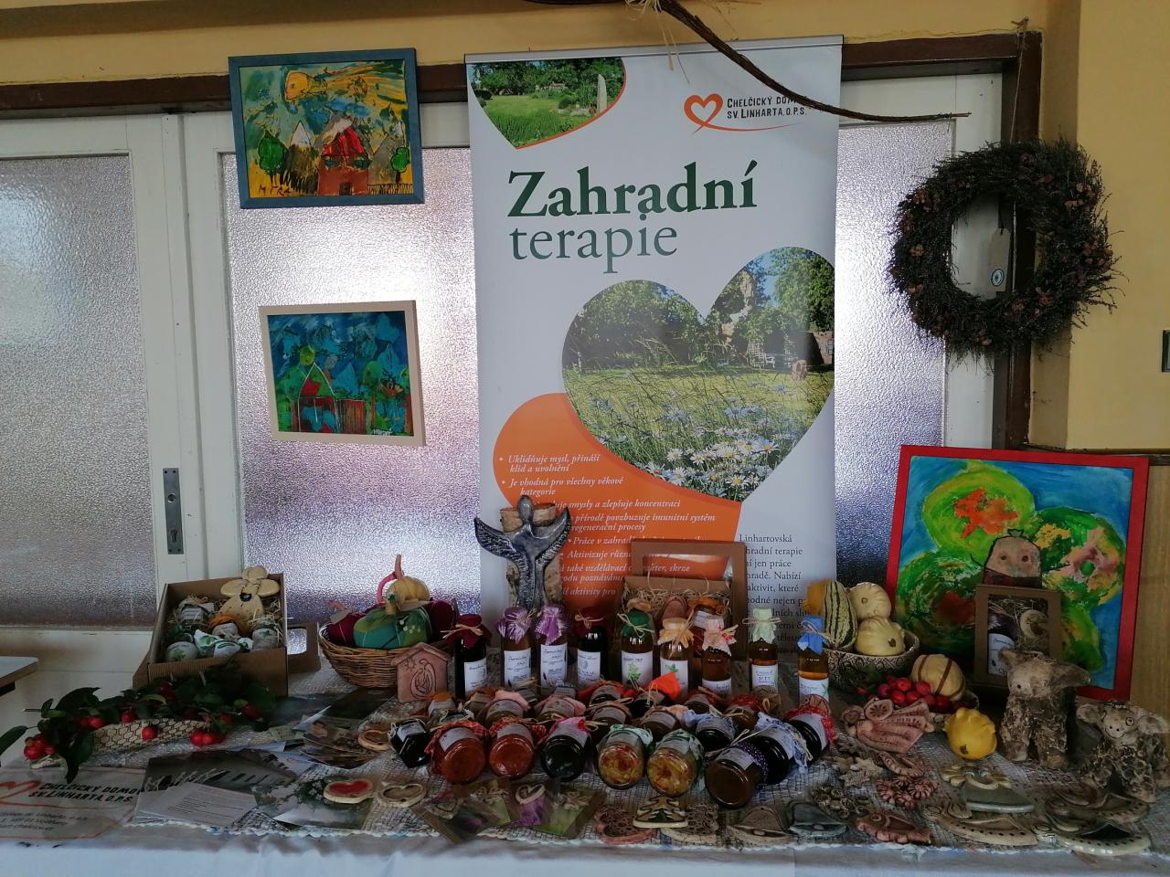 Chelčický domov sv. Linharta se v letošním roce prezentoval jak na ovocném jarmarku svým stánkem potravinových produktů z přírodní zahrady, keramickou tvorbou a floristickými vazbami, tak měl svou příjemnou prezentaci na výstavě v Kulturním domě. S uživateli sociálně terapeutických dílen jsme se také zúčastnili soutěže O pekařský výrobek, tentokrát jsme pekli drobenkový koláč s výtečnou aronií z naší přírodní zahrady.